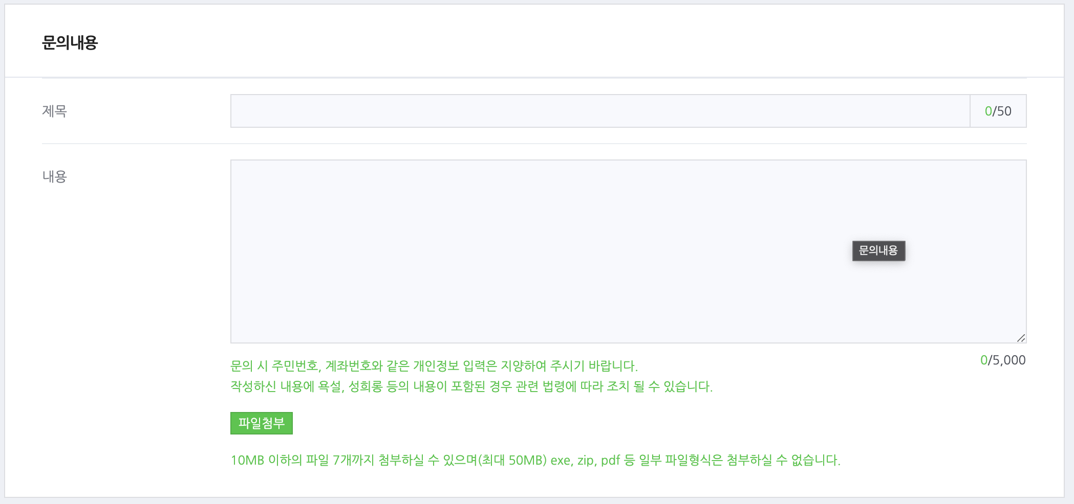 4) 상담 유형을 체크하고 상담 제목 및 문의내용은 아래와 같이 작성하고 문의하기 클릭