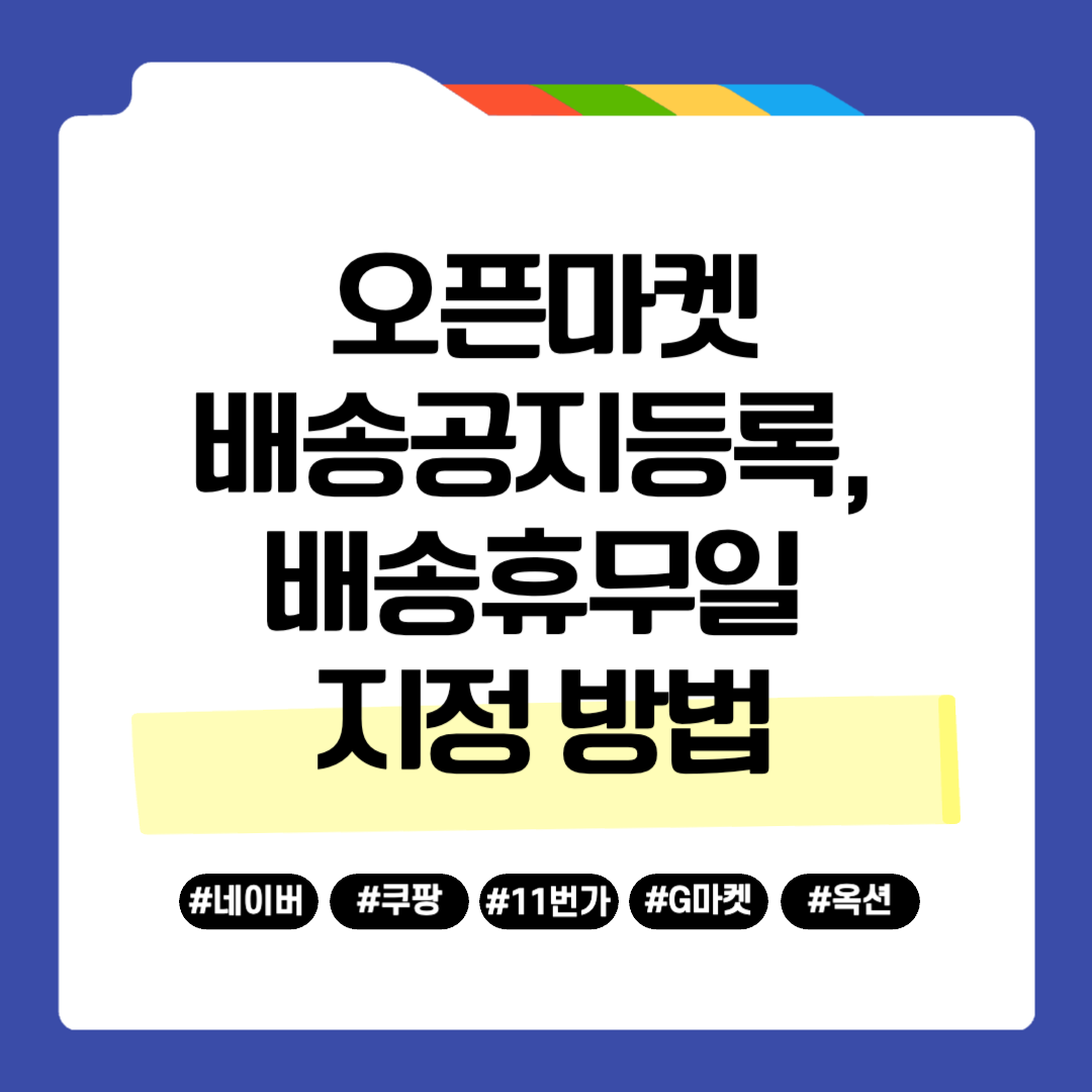 이번 포스팅에서는 네이버 스마트스토어, 쿠팡, 11번가, G마켓, 옥션 판매자센터에서 각각 배송 휴무 공지를 등록하고 배송휴무일을 설정하는 방법에 대해 알아보겠습니다.