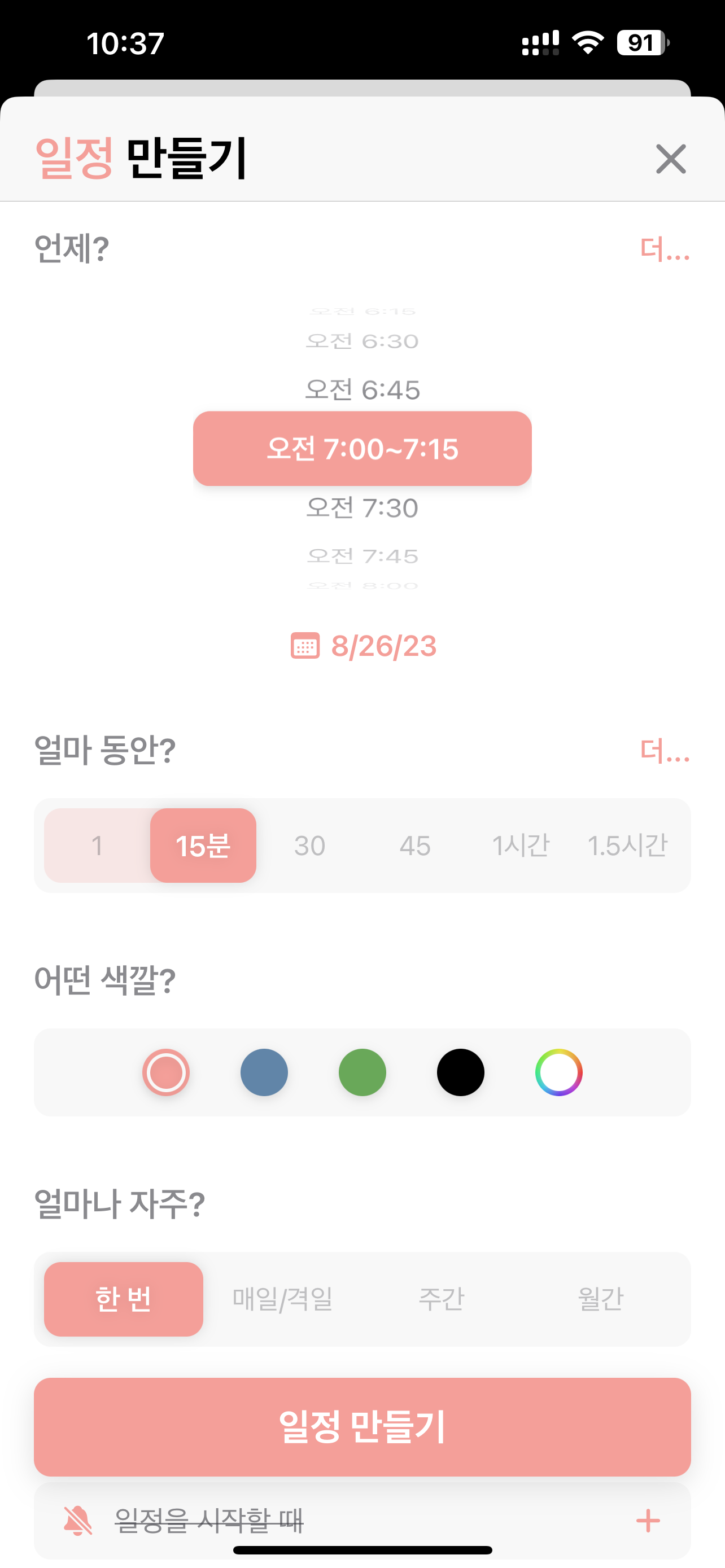 일정 제목과 일정을 상징하는 아이콘도 내 입맛에 맞게 설정하실 수 있어요.