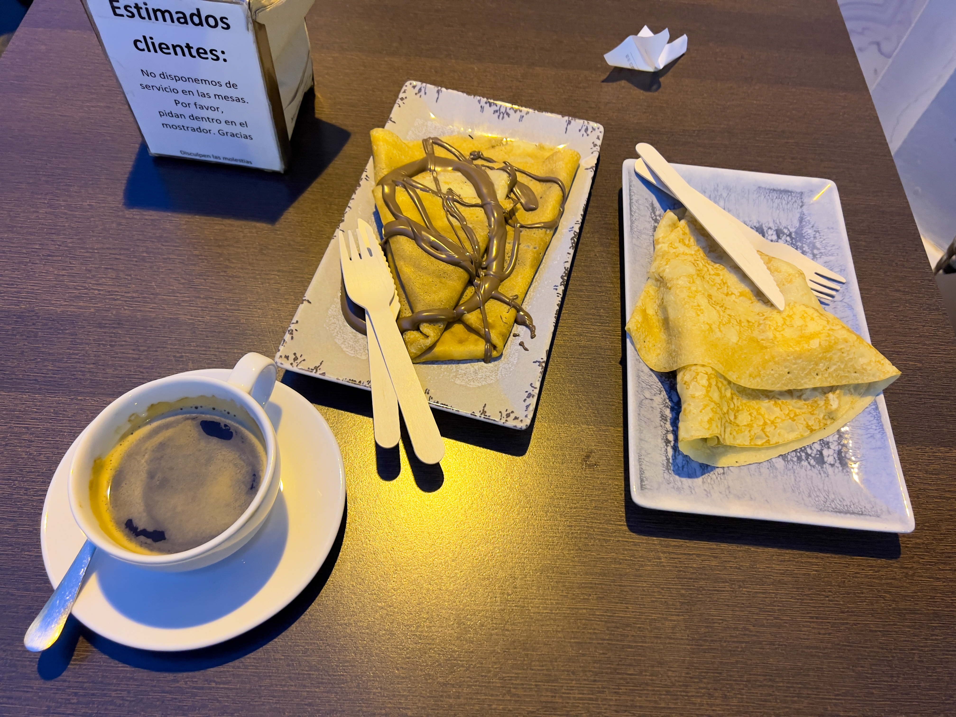 간식으로 크레페를 먹었습니다. 주문을 잘못해서 크레페에 누텔라 따로, 바나나 따로 들어가 있었습니다.