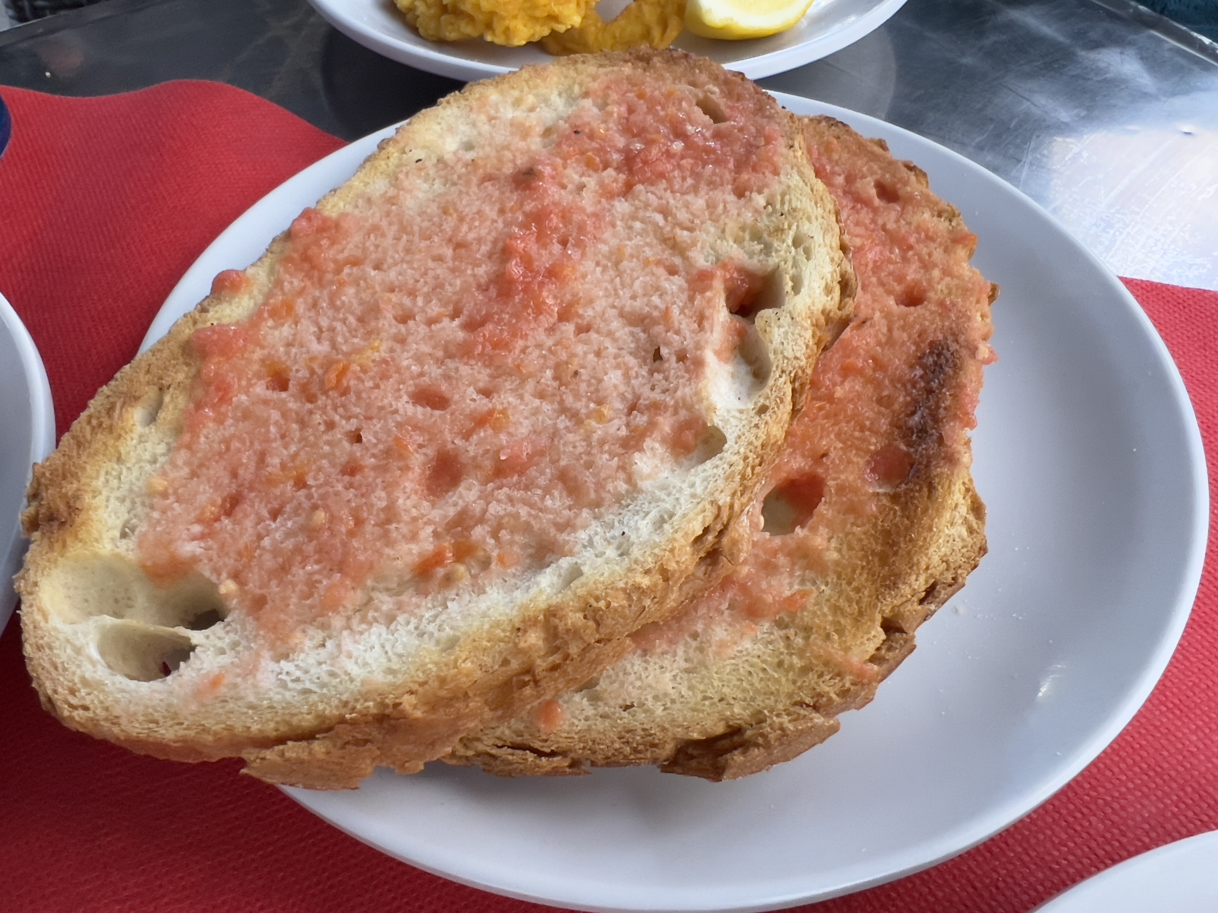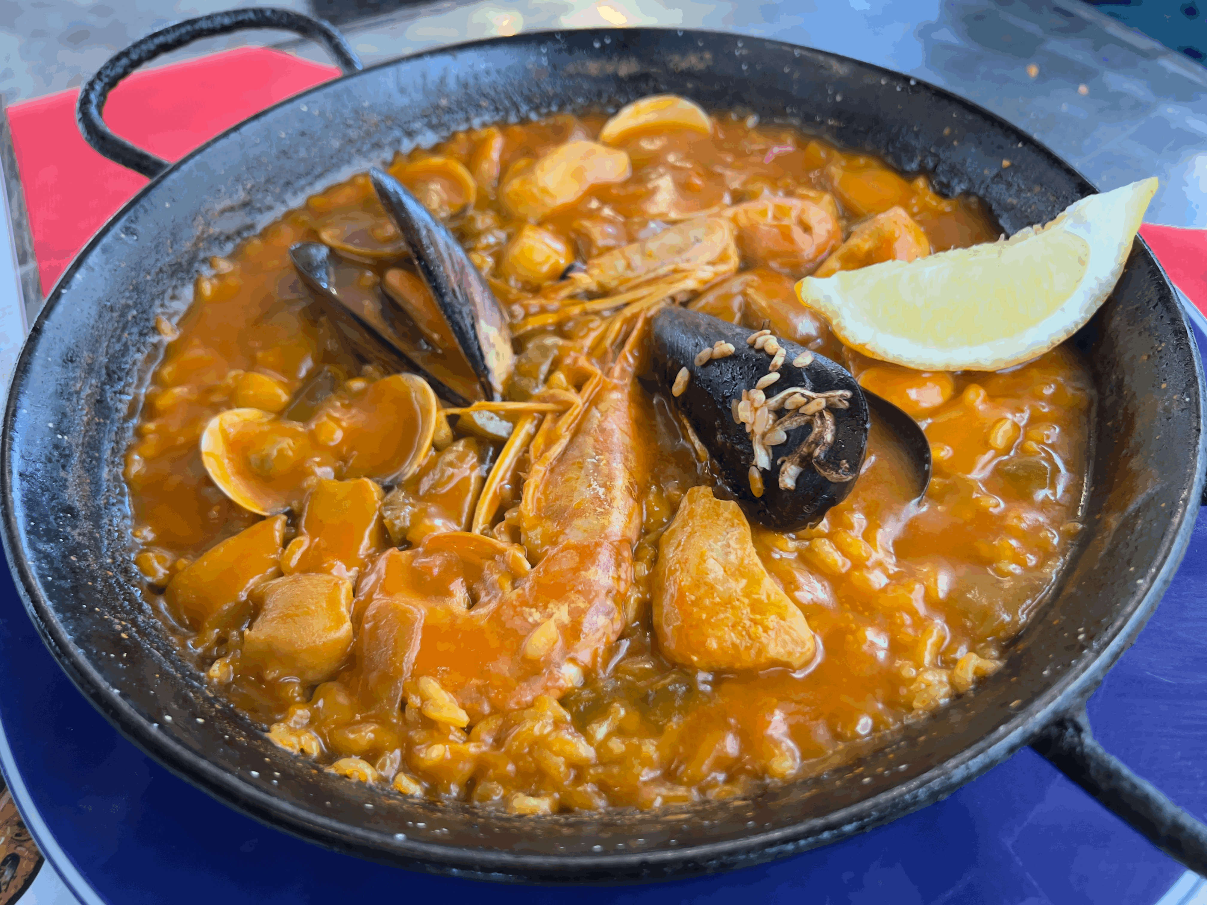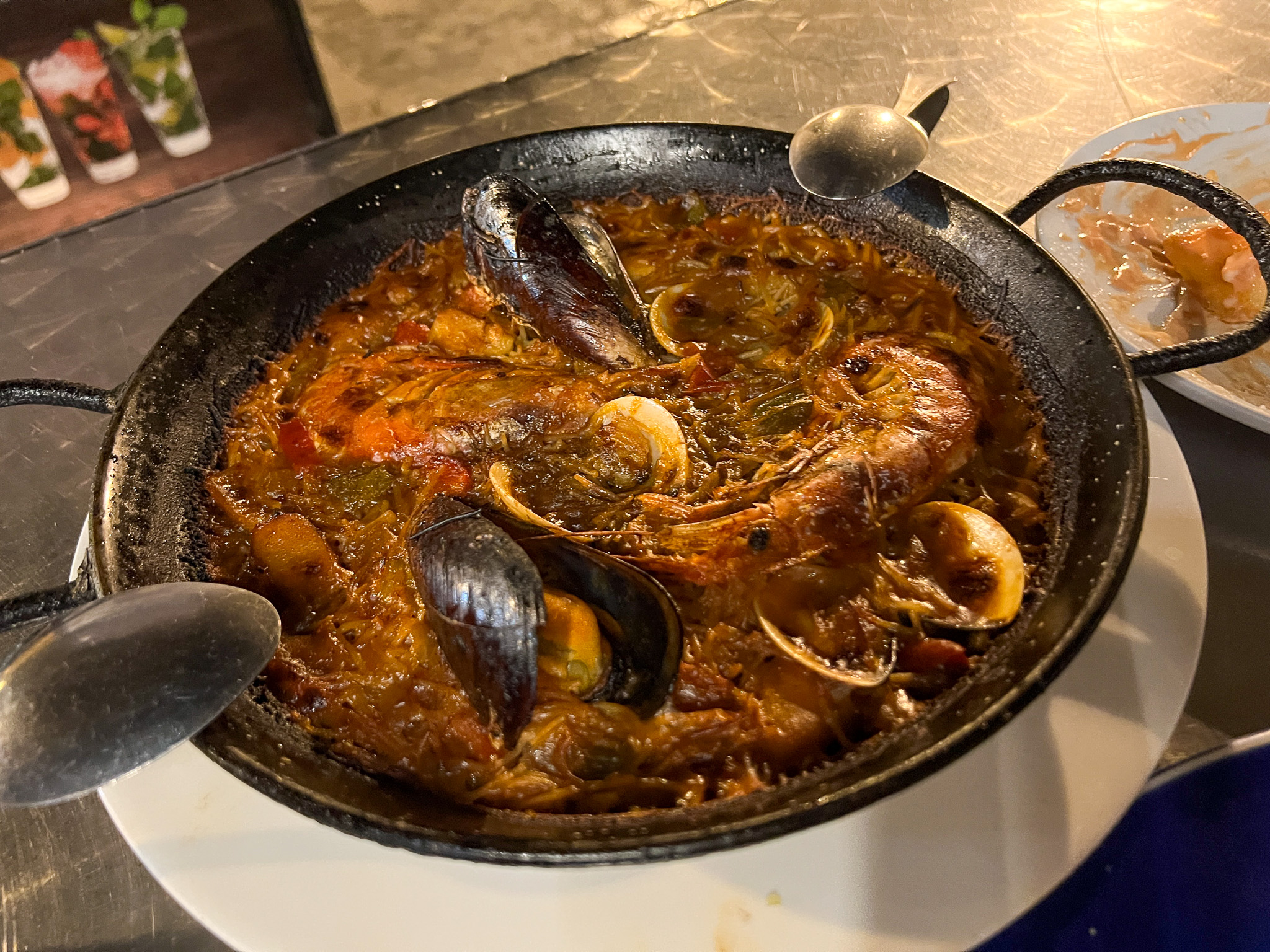 마지막 날에는 판 콘 토마테, 브라바 소스가 곁들여진 감자, 해산물 빠에야, 이베리코 돼지 요리를 먹었습니다. 이베리코 돼지 요리는 약간 속이 덜 익혀져서 나와서 이거 빼고는 다 맛있게 잘 먹었던 식당입니다!