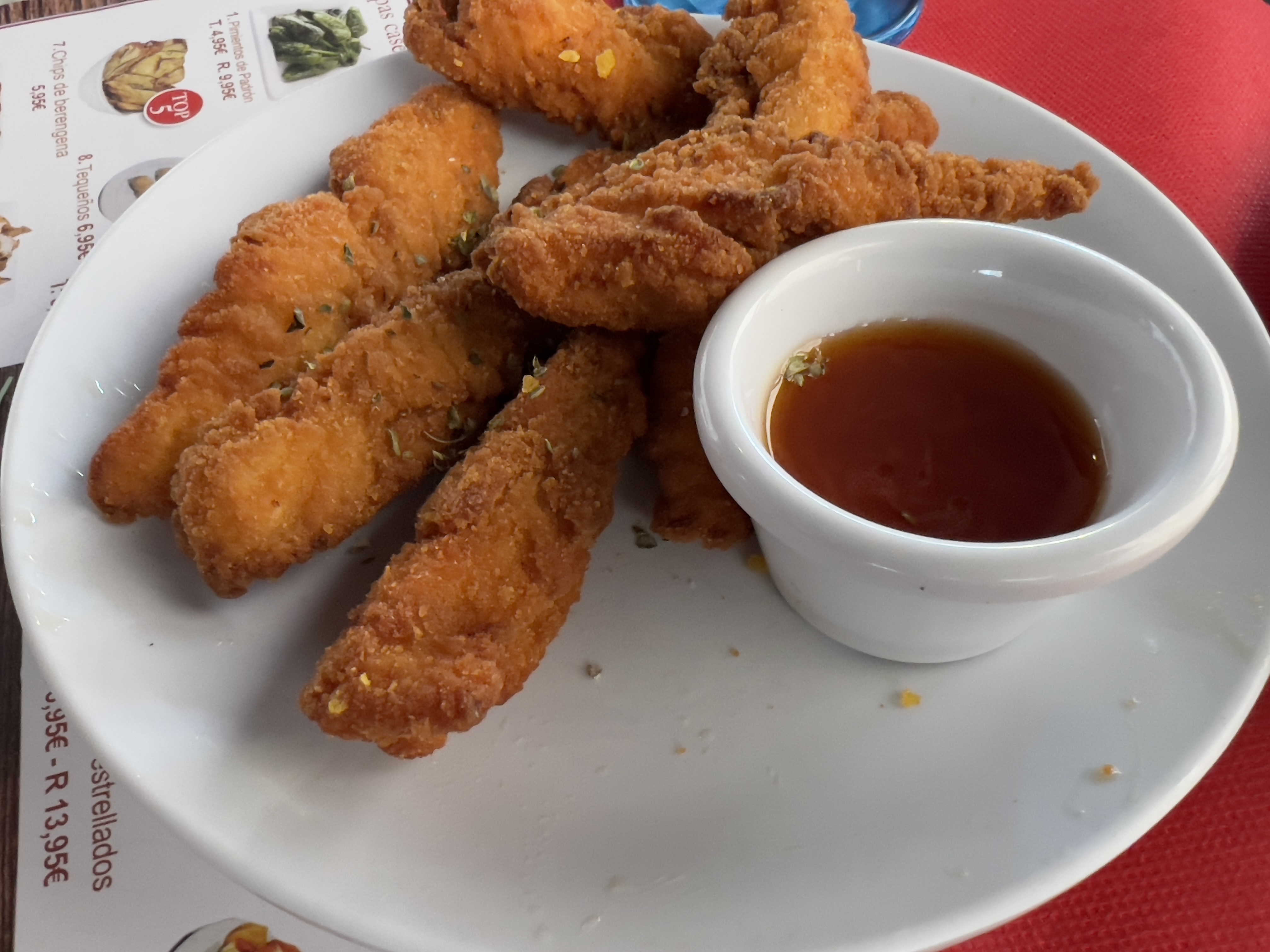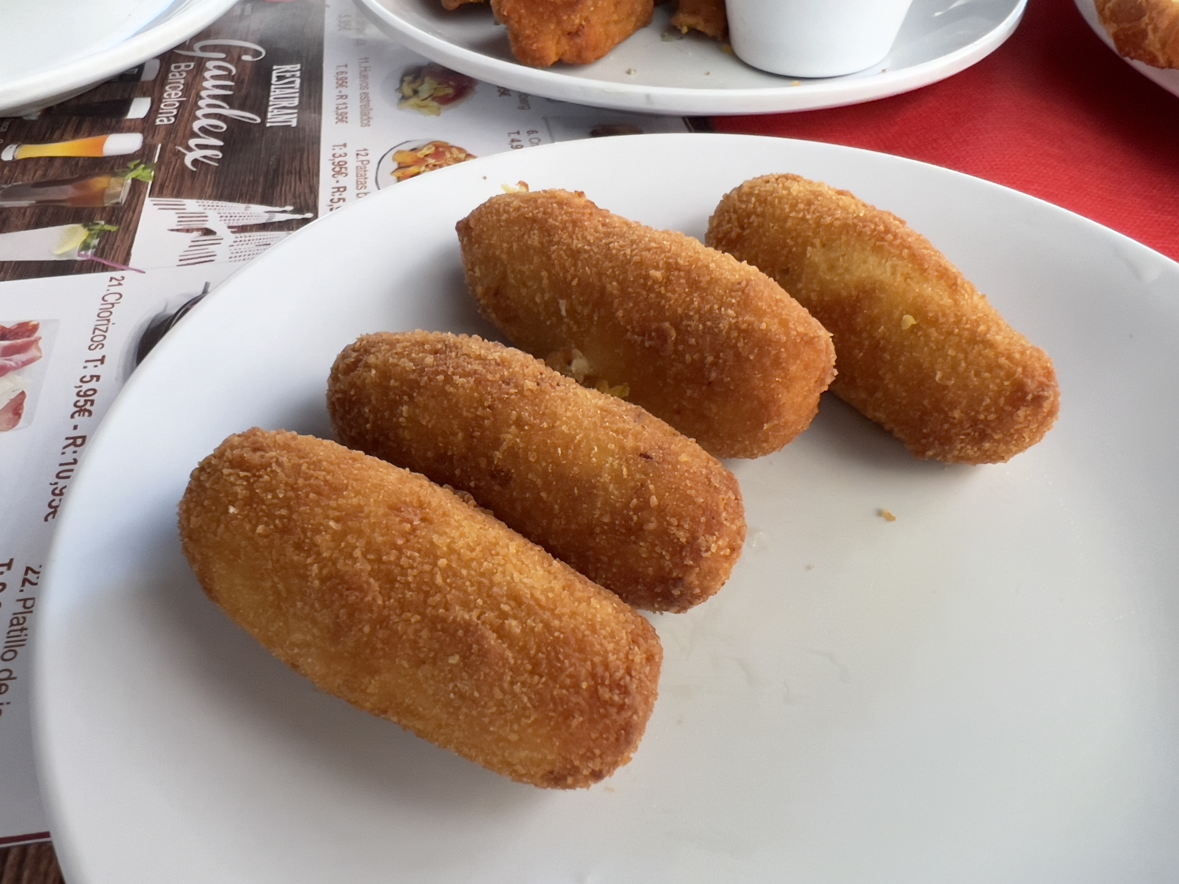 첫날 점심에는 크로켓, 치킨 텐더(?), 판 콘 토마테, 깔라마리 튀김, 샐러드, 해산물 빠에야를 먹었습니다. 타파스로 시키다 보니 해산물 빠에야를 제외하고는 소량으로 나왔습니다.