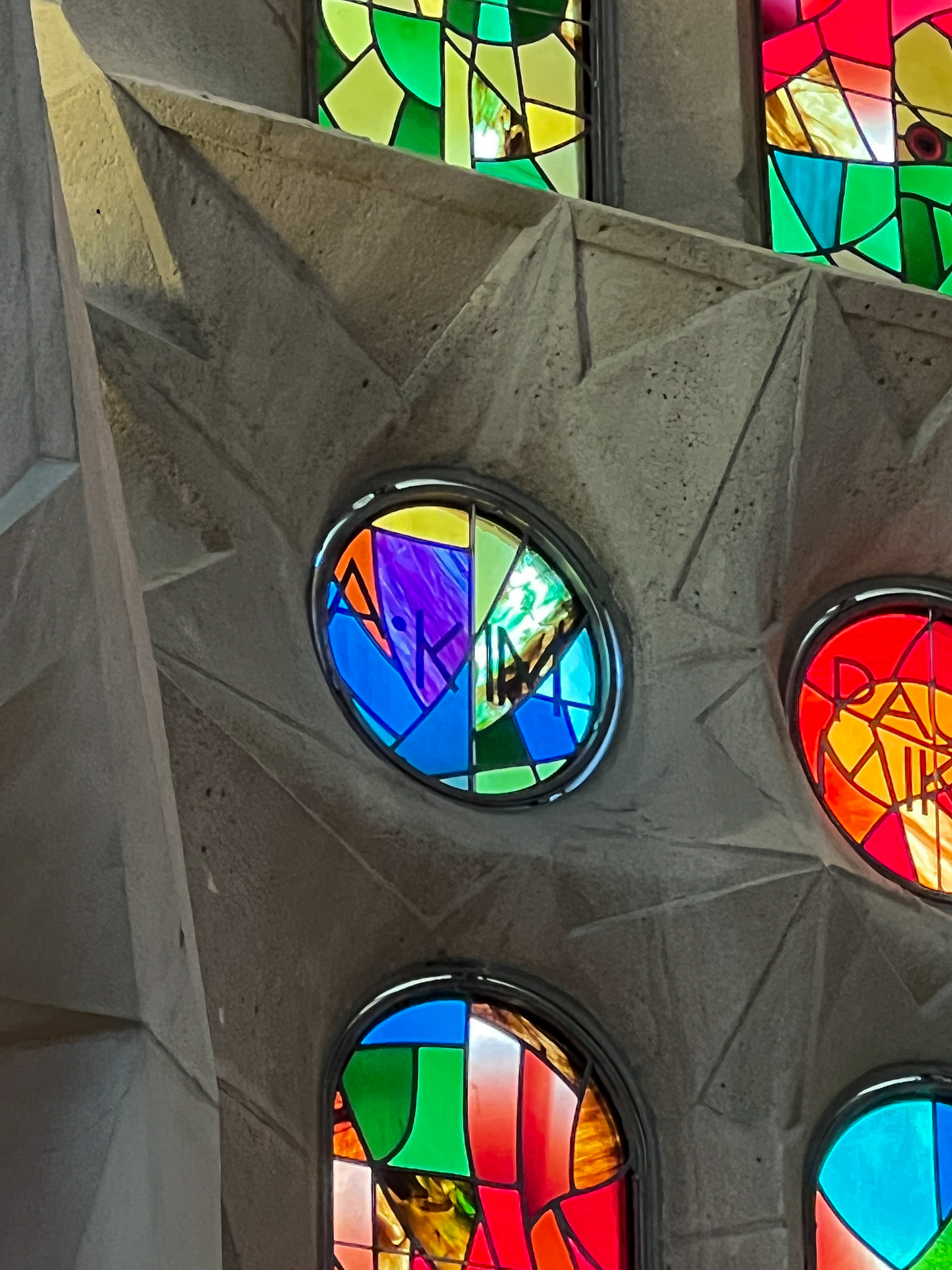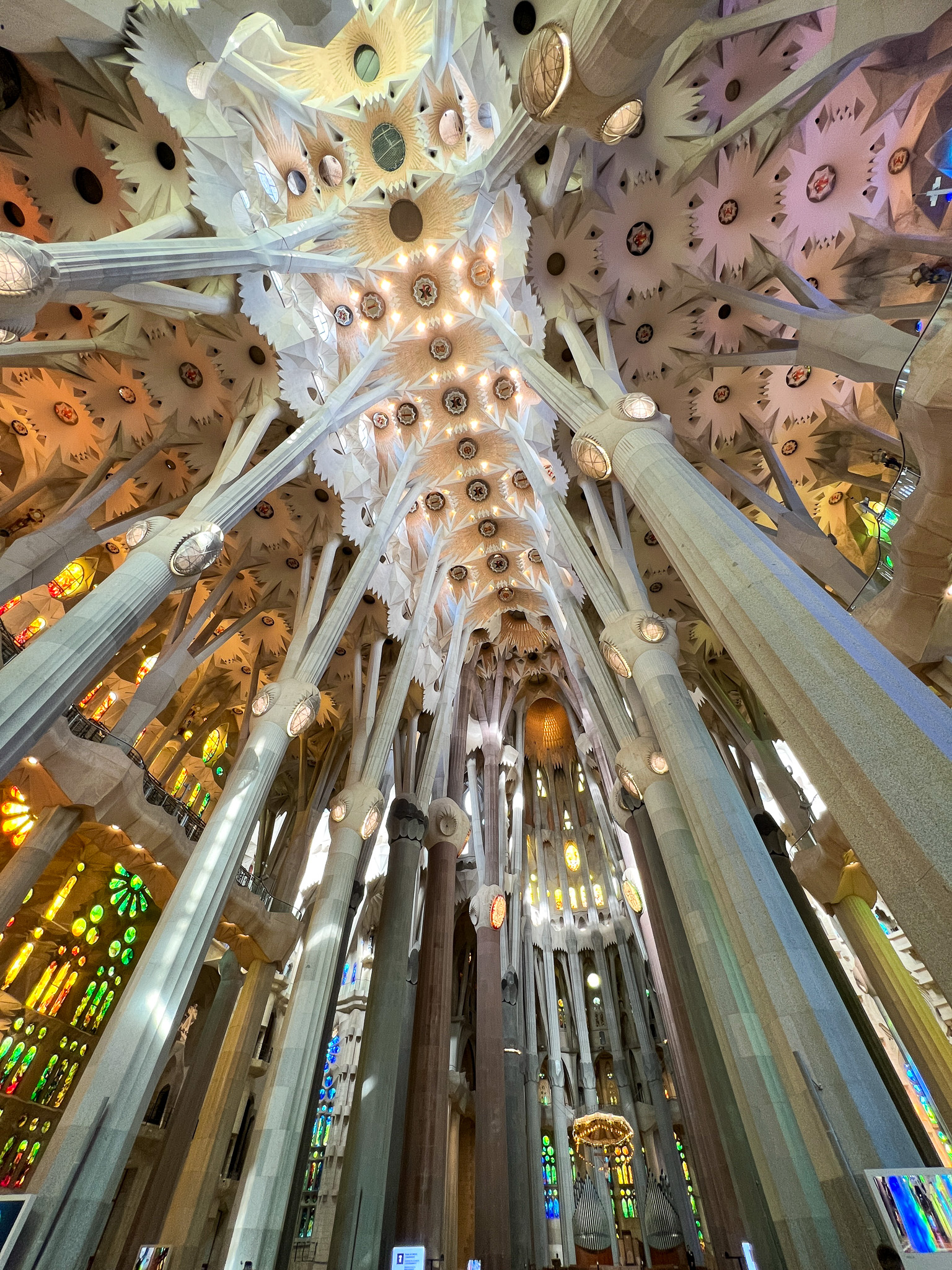 성당 내부입니다. 유럽 내 다른 성당들과 다르게 굉장히 밝은 느낌입니다. 여러 색깔의 스테인드 글라스가 크게 벽면을 차지하고 있고, 이를 통해 들어오는 자연광이 성당 내부의 조명 역할을 합니다. 성당을 바치고 있는 기둥은 나뭇가지를 표현하고 있다고 합니다.