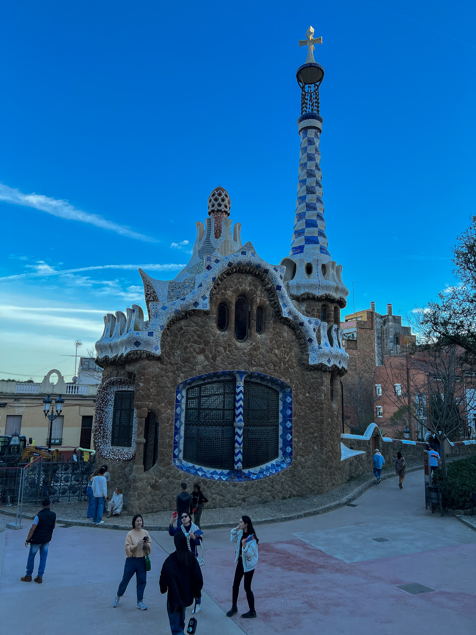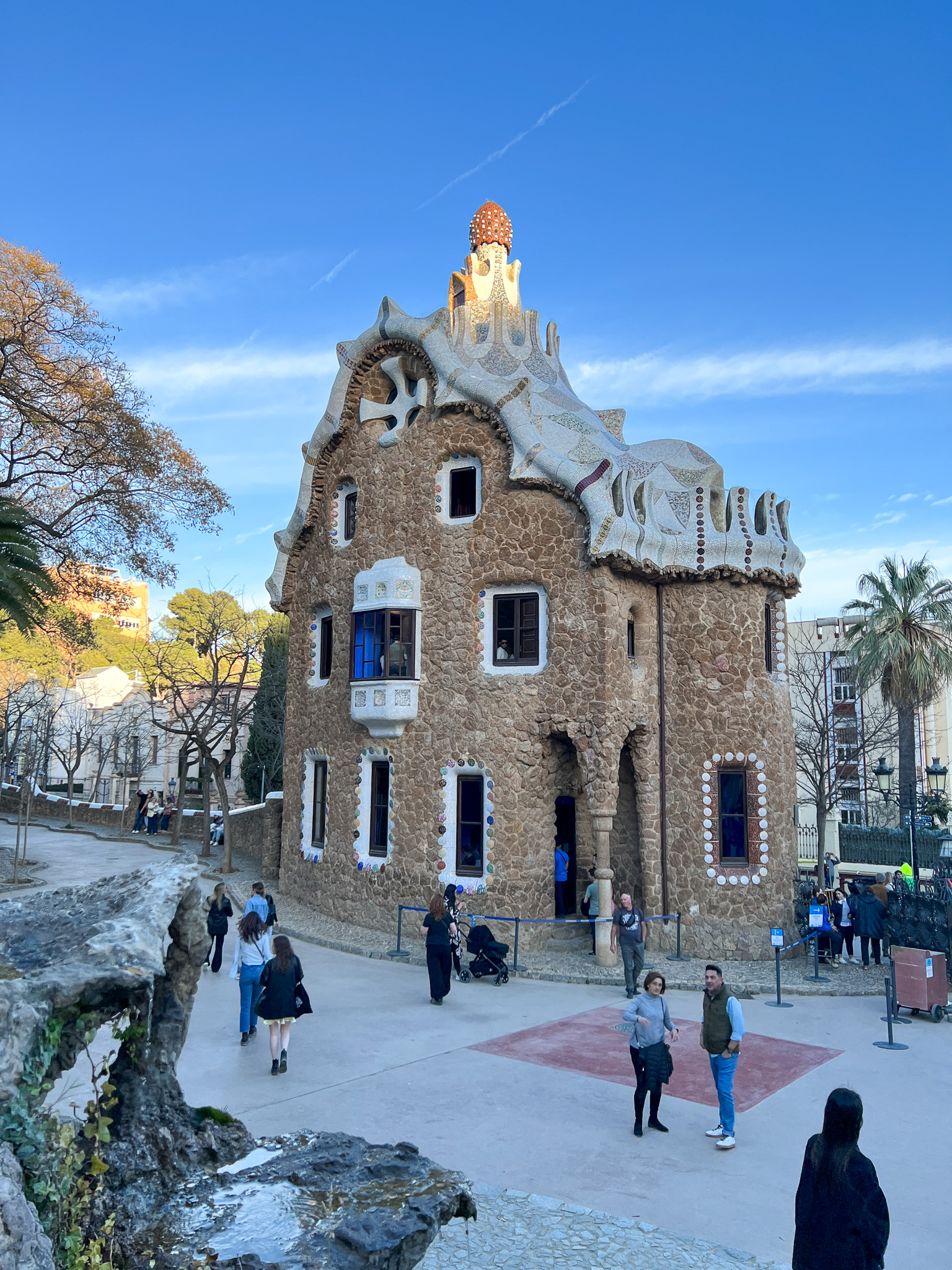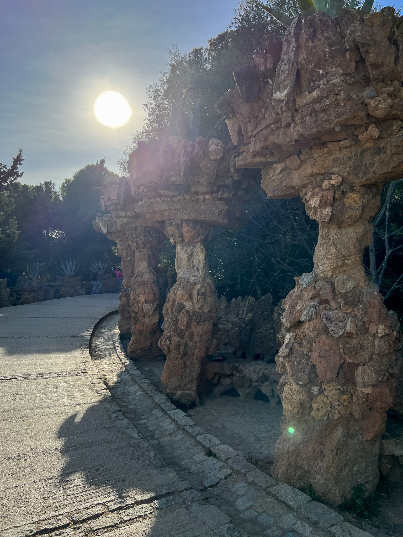 다음은 가우디의 작품 중 하나인 구엘 공원으로 이동했습니다. 구엘 공원은 이름에서도 알 수 있듯이 영국인인 구웰의 후원으로 탄생한 공간입니다. 공원의 산책로를 따라다니다 보면 동화책에서 나올 법한 모양의 건축물들이 시선을 사로잡습니다. 정문에는 유명한 도마뱀 분수가 있습니다.