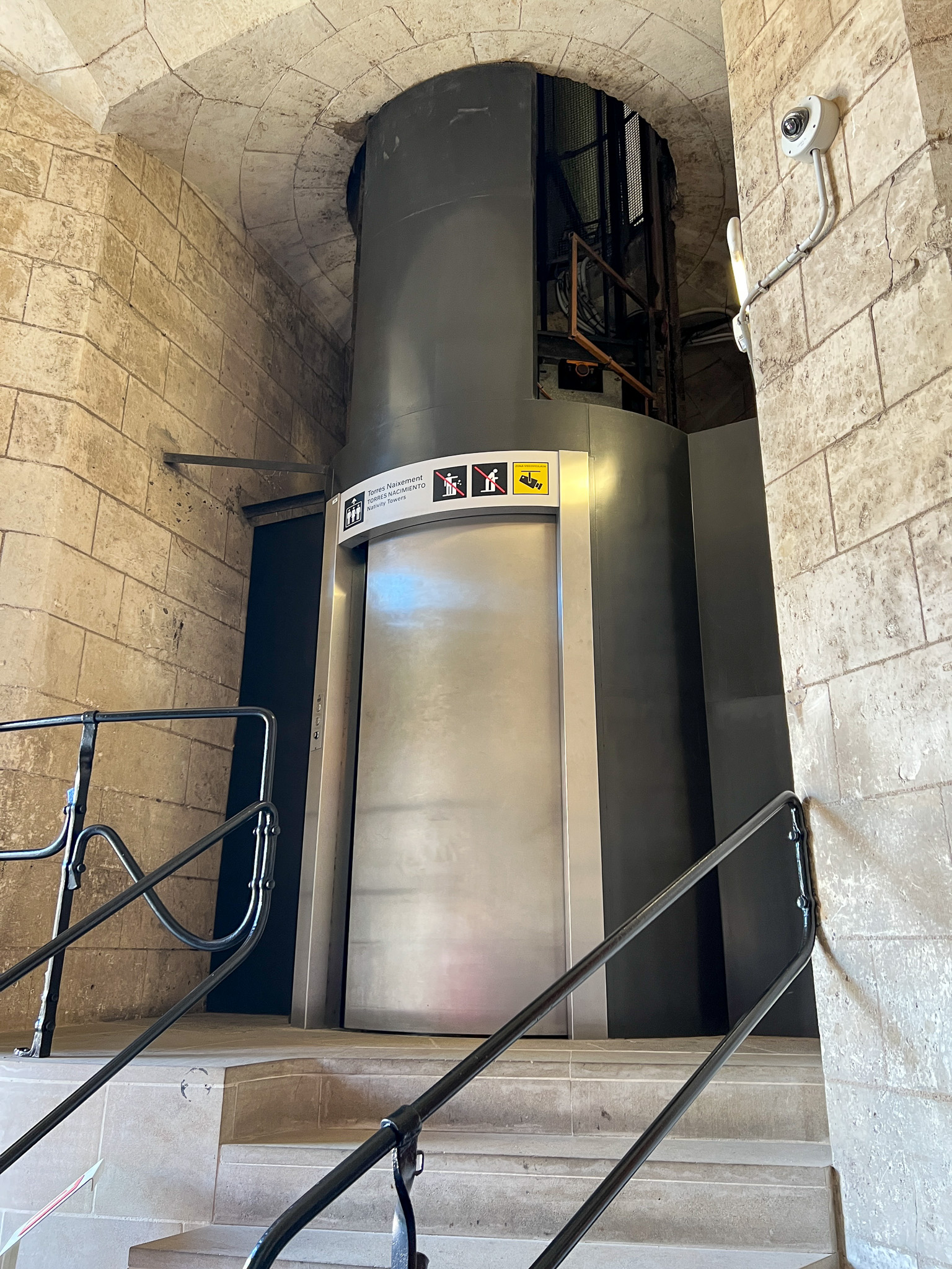 탄생의 파사드 입장 시간에 맞춰 엘리베이터를 타고 이동했습니다. 엘리베이터에 많은 인원이 탑승할 수 없기 때문에 소규모의 인원씩 엘리베이터 탑승을 통제합니다.