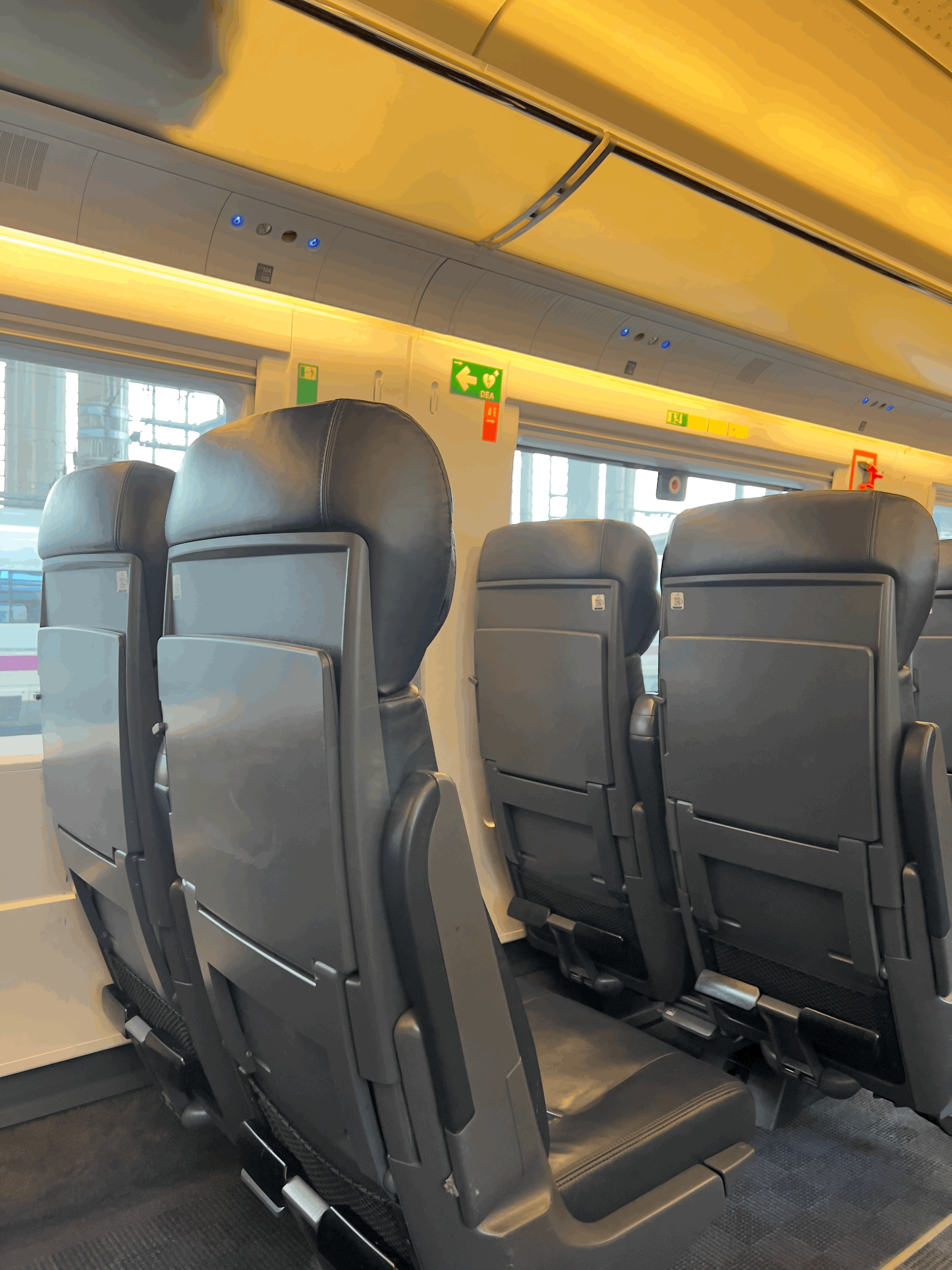 기차 안 좌석 배열은 KTX랑 비슷합니다.
