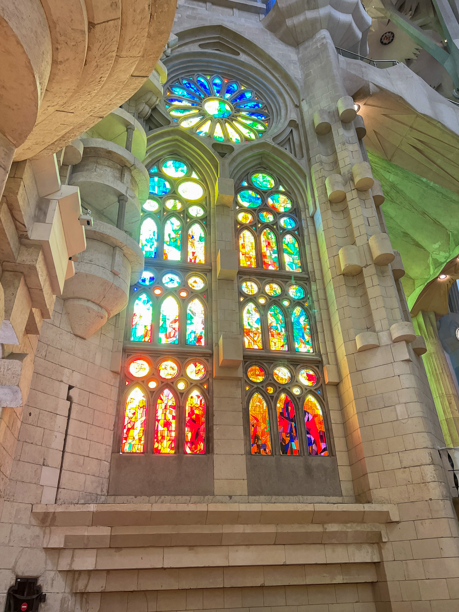 성당 내부입니다. 유럽 내 다른 성당들과 다르게 굉장히 밝은 느낌입니다. 여러 색깔의 스테인드 글라스가 크게 벽면을 차지하고 있고, 이를 통해 들어오는 자연광이 성당 내부의 조명 역할을 합니다. 성당을 바치고 있는 기둥은 나뭇가지를 표현하고 있다고 합니다.