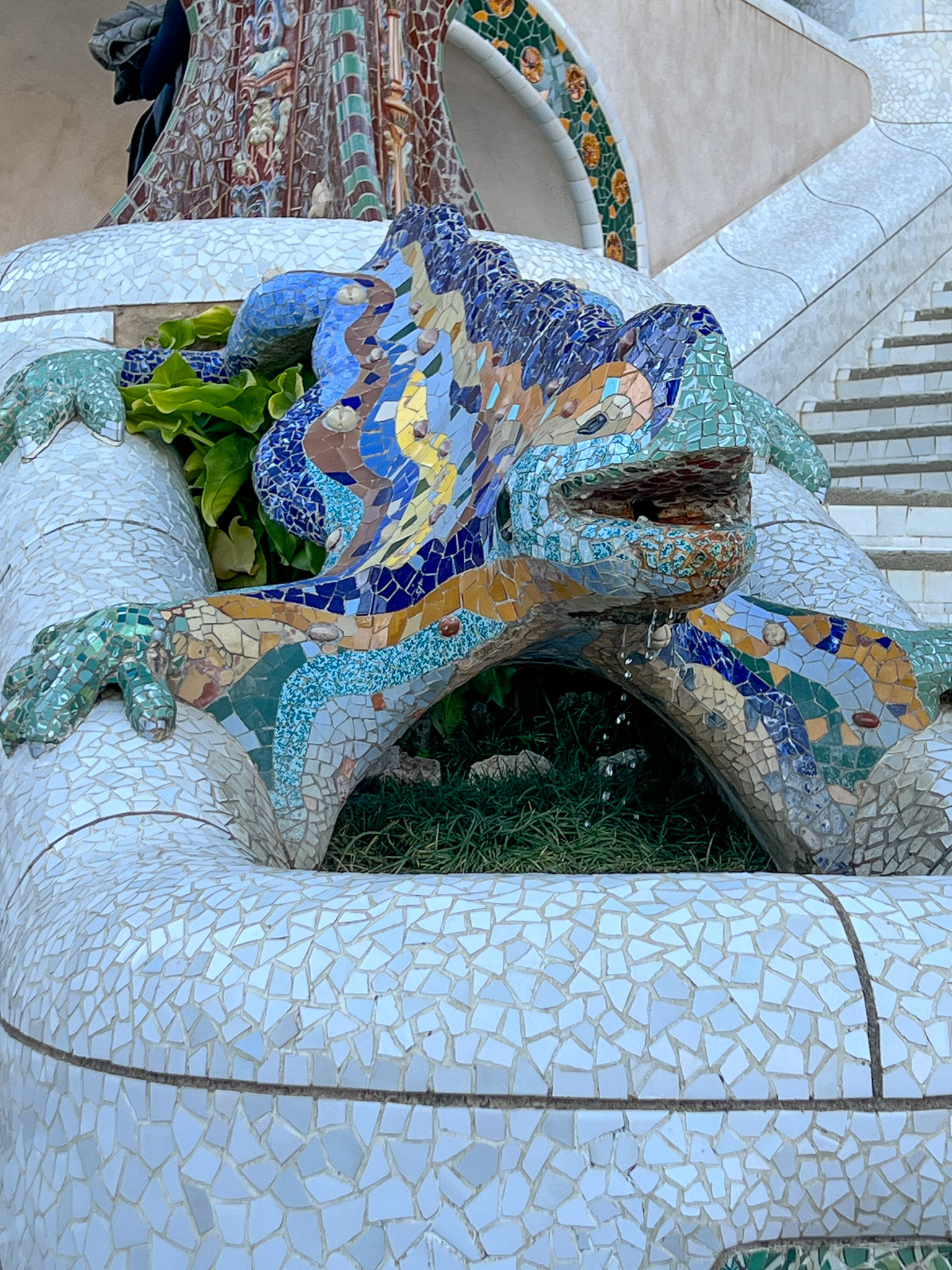 다음은 가우디의 작품 중 하나인 구엘 공원으로 이동했습니다. 구엘 공원은 이름에서도 알 수 있듯이 영국인인 구웰의 후원으로 탄생한 공간입니다. 공원의 산책로를 따라다니다 보면 동화책에서 나올 법한 모양의 건축물들이 시선을 사로잡습니다. 정문에는 유명한 도마뱀 분수가 있습니다.
