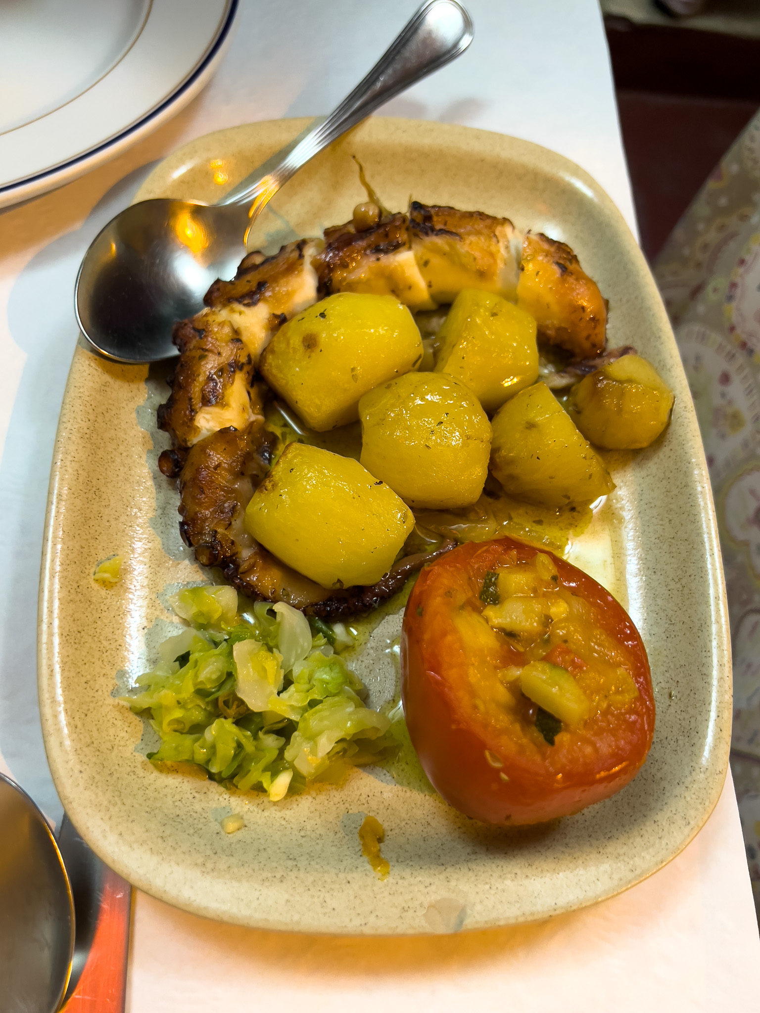 저녁은 포루투에서 유명한 문어 요리와 국밥 같이 보이는 해물밥을 먹었습니다. 'A Grade'라는 곳이고요. 문어가 정말 정말 맛있었습니다. 제가 문어를 별로 안 좋아하는데, 정말 질기지도 않고 쫀득한 식감에 문어 스테이크랑 같이 나온 가니쉬들도 맛있었습니다! 해물밥은 뭔가 국밥이라고 많이들 표현하시던데, 저는 국밥보다는 약간 배춧국 같은 국물에 밥을 말아놓은 것 같았습니다.