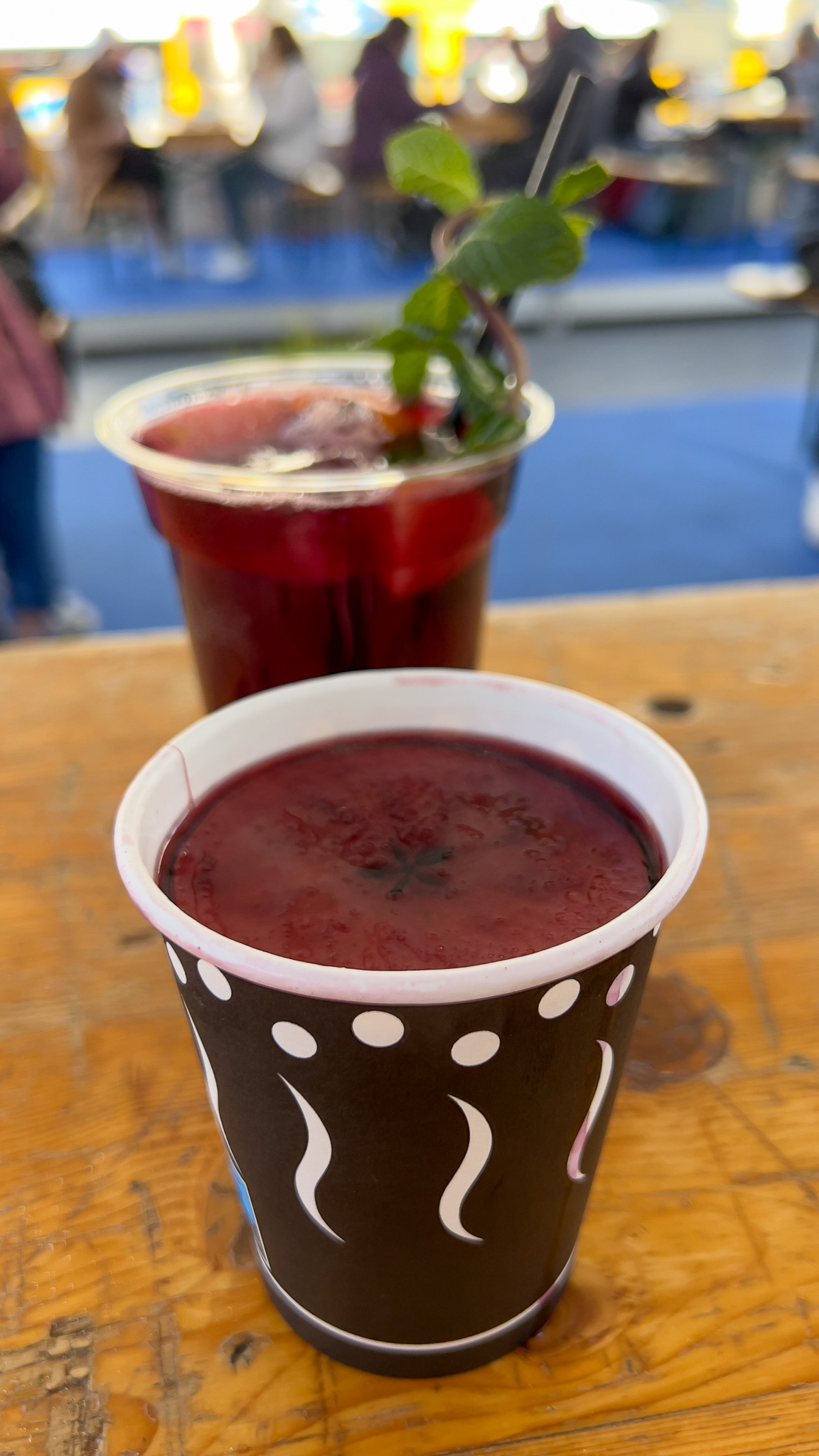 마지막으로 야경을 보기 위해 상 페드로 데 알칸타라 전망대로 향했습니다. 기온이 꽤 낮고 바람도 많이 불어서 쌀쌀했던 찰나에 전망대 한쪽에서 뱅쇼 같은 것들을 팔고 있었습니다. 한 잔 안 할 수가 없었습니다. 저녁 하늘이 주홍빛으로 예쁘게 물들어 가는 모습을 보니 정말 예뻤습니다.